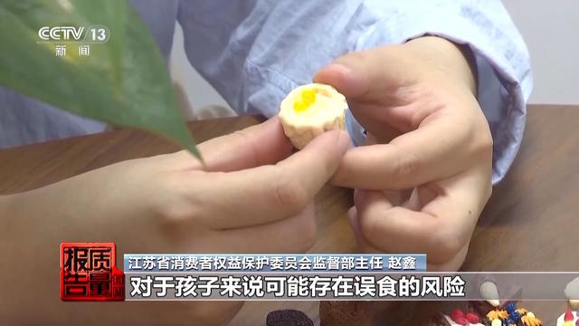 江苏省消费者权益保护委员会监督部主任 赵鑫:首先发现产品没有任何的包装,只是放在简单的塑料袋中,也没有任何的生产标识、年龄范围和安全警示等信息,对于家长来说没有任何提示,对于孩子来说可能存在误食风险。