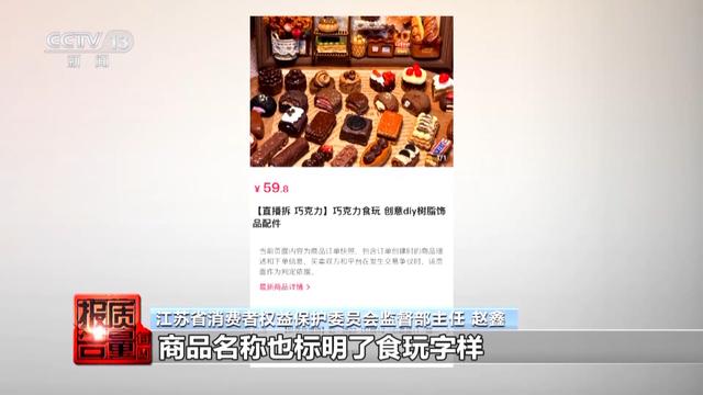江苏省消费者权益保护委员会监督部主任 赵鑫:这个直播间名称标明了是一个“食玩屋”,在店铺上架的产品链接中,商品名称也标明了“食玩”字样,在商品的讲解回放视频中,商家也提到这是“食玩系列”。这类产品就是迷你版的玩具。